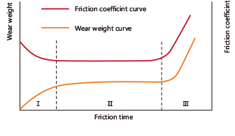 SE-010 is of excellent anti-abrasion performance,mainly due to the particular molecule structure of PTFE. The abrasion process can be generally divided into three phases, so there kinds of friction coefficient. See the right graph:
